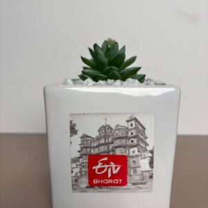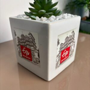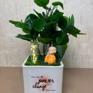 Artificial Plant with Monk Idol & LED Message Jar in Ceramic Pot – “Power to Change”