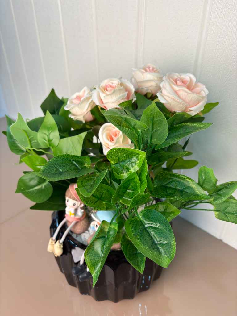 - Flowers: Artificial Roses (Light Pink/Cream)