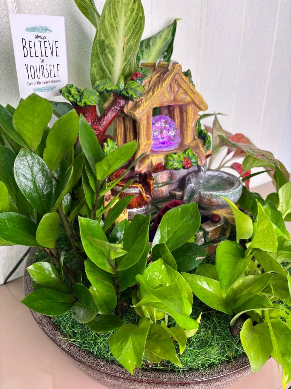 Planted with a vibrant mix of real indoor plants, carefully chosen for their beauty, air-purifying qualities, and low maintenance needs: