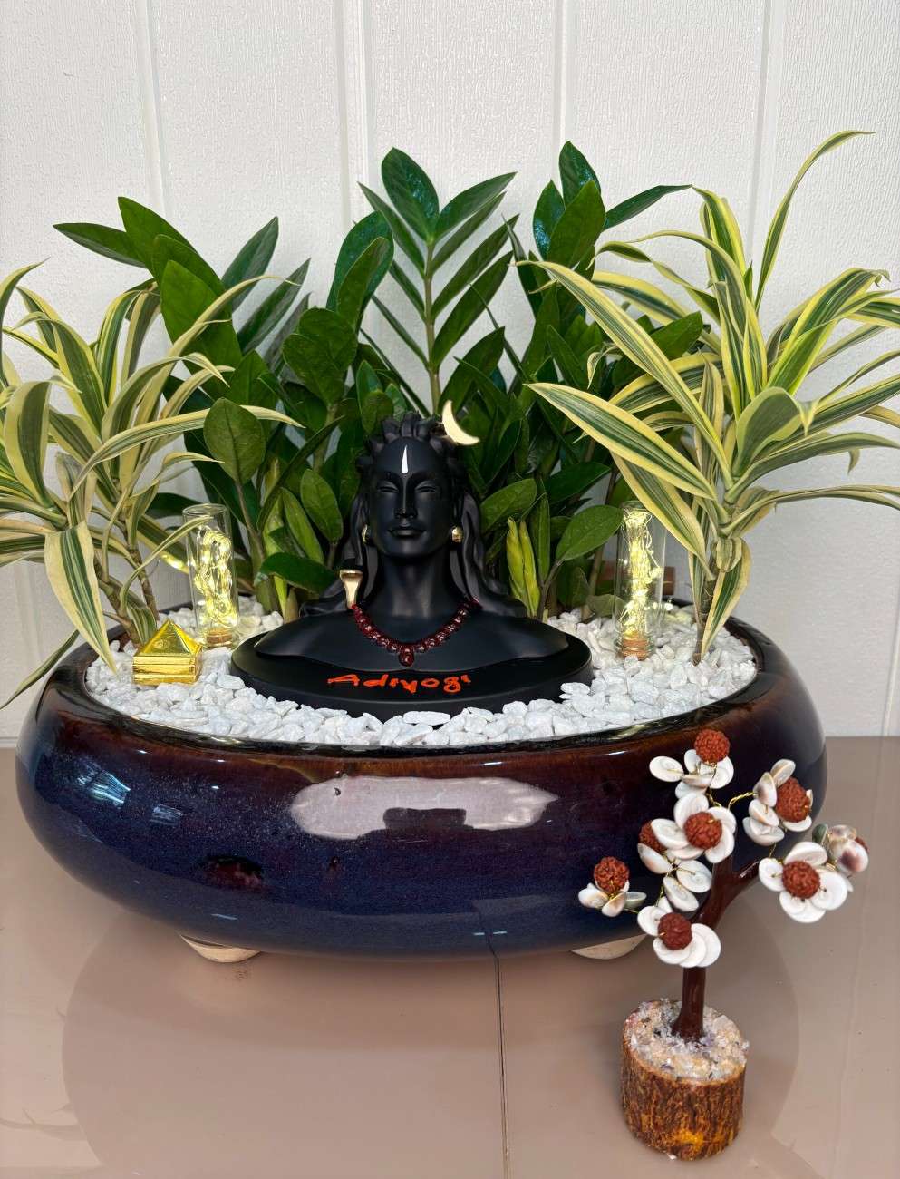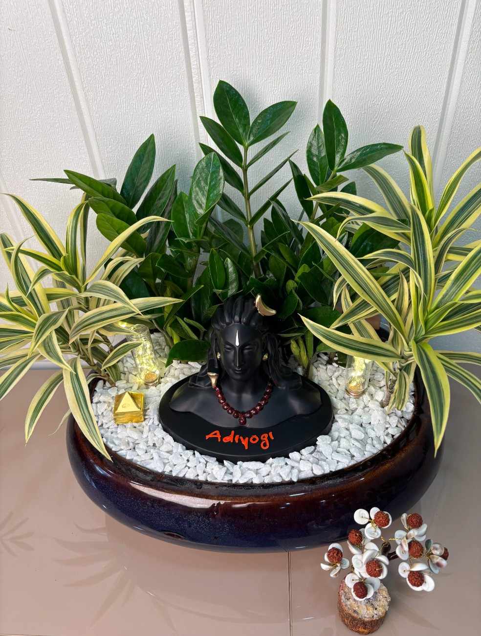This profound planter is designed to be a centerpiece for meditation, inspiration, and spiritual connection. It beautifully combines resilient live plants with the iconic Adiyogi Shiva bust, symbolizing the source of Yoga and the essence of inner engineering. The ambient LED lighting creates a sacred and serene atmosphere, perfect for homes, meditation rooms, or offices.