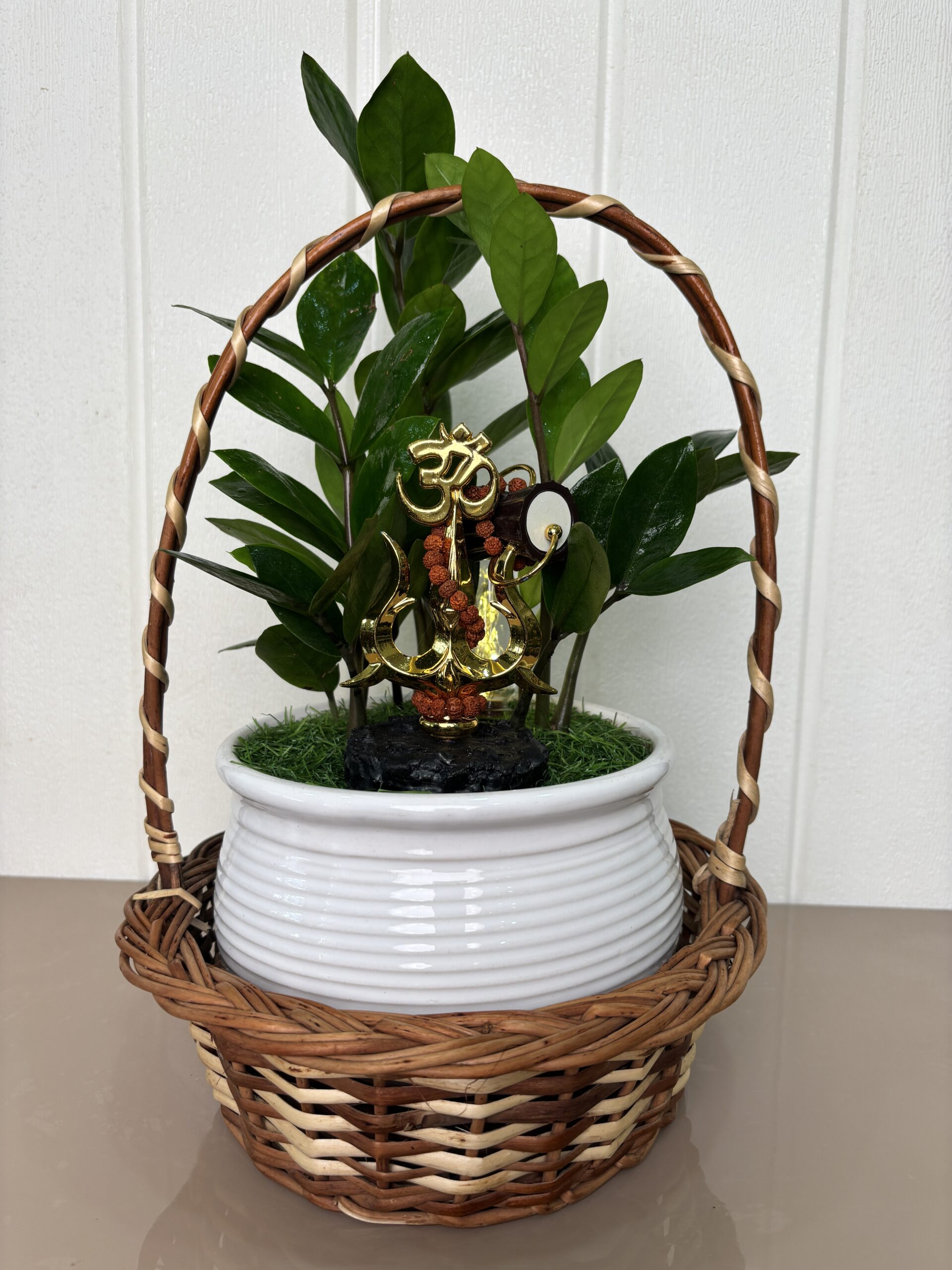 HomeUncategorizedDivine Green Basket with ZZ Plant & Om Shakti Idol – Shravan Special