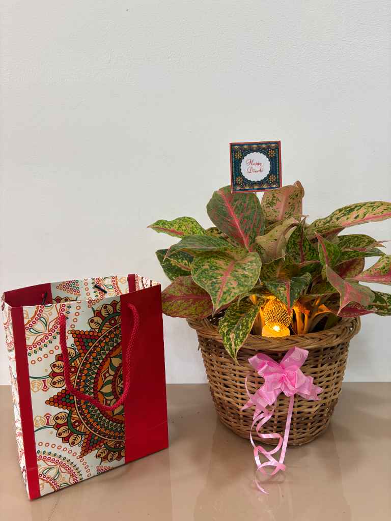 Celebrate the joyous occasion of Diwali with our “Diwali Blessings Hamper,” a beautiful and auspicious gift designed to illuminate homes and hearts. This exquisite set combines the natural allure of a live plant with radiant festive decor, making it an ideal present for family, friends, or corporate gifting during the festival of lights.