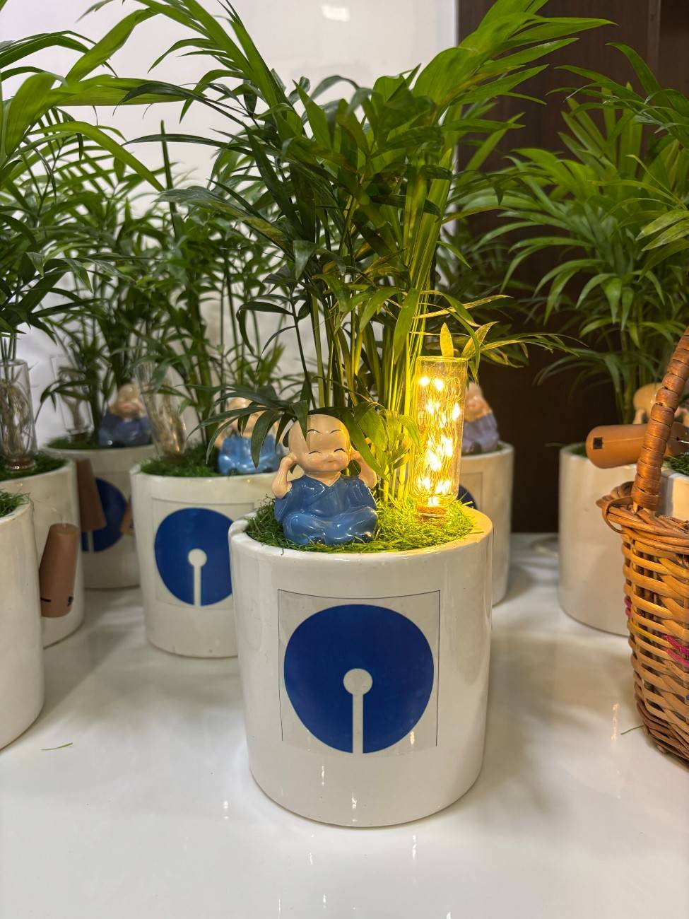 - Customizable Ceramic Pot: Housed in a square white ceramic pot with a visible SBI logo, ideal for corporate branding.