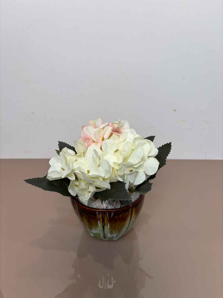 Transform your home or office with the understated beauty of our “Elegant White & Pink Artificial Hydrangea Pot.” This exquisite artificial floral arrangement offers the delicate charm of real hydrangeas without any of the upkeep, ensuring lasting beauty and freshness.