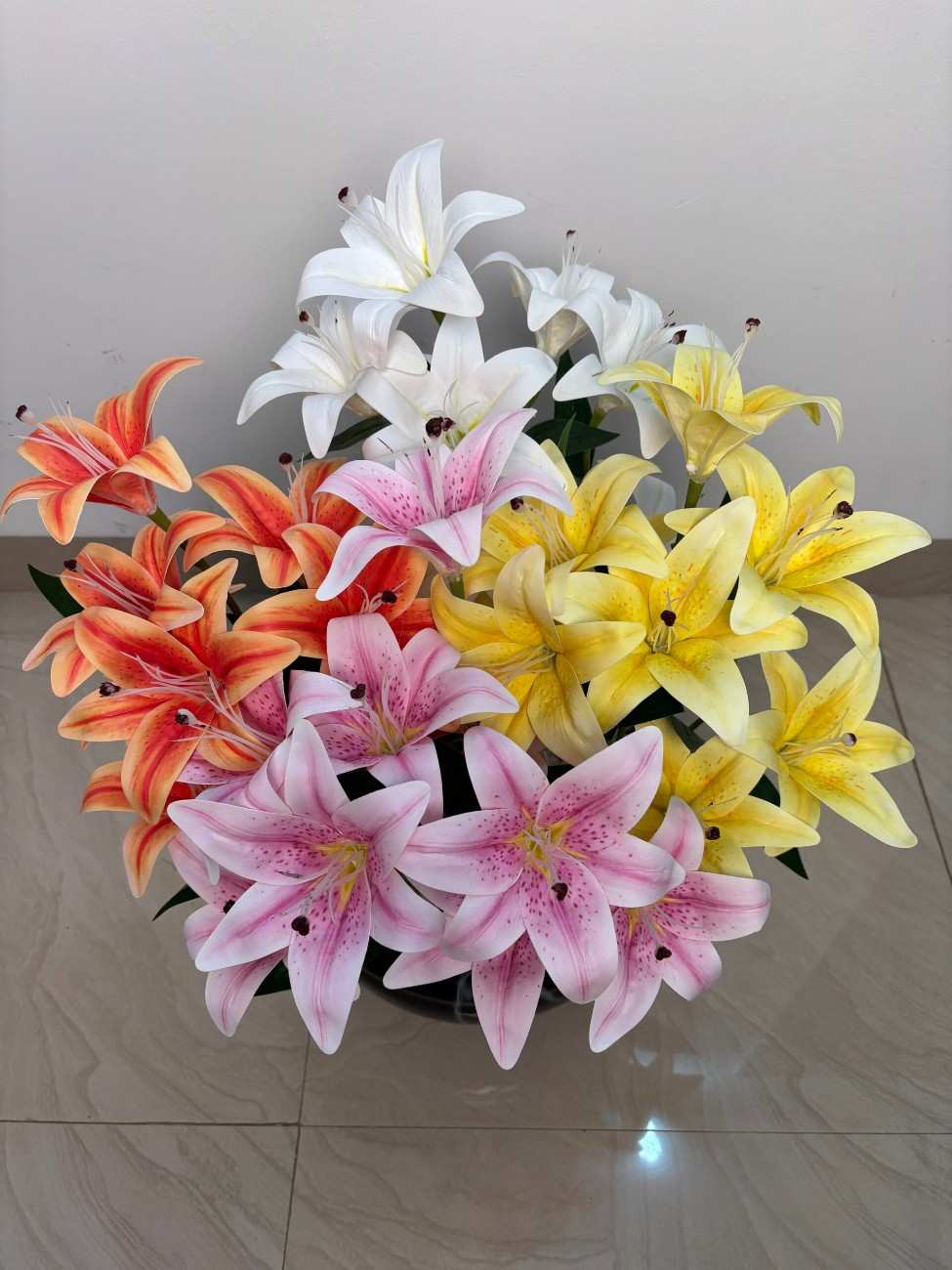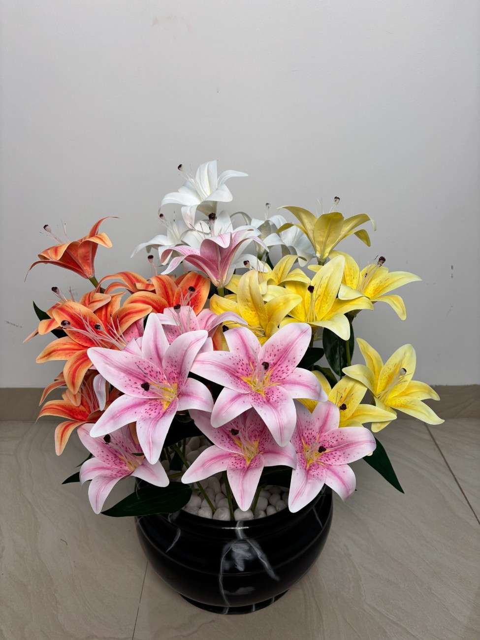 Infuse your home or office with a burst of color and sophistication with our Grand Artificial Multi-Color Lily Arrangement. This impressive floral display is designed to bring the dramatic beauty of fresh lilies to your interiors, offering enduring vibrancy without any of the care requirements.