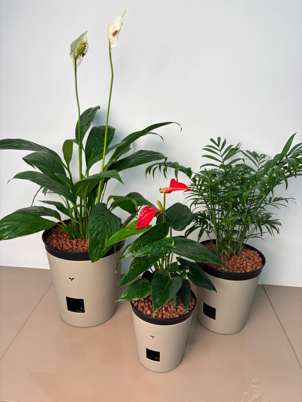 Premium Self-Watering Indoor Plant Trio: Peace Lily, Anthurium, and Parlor Palm