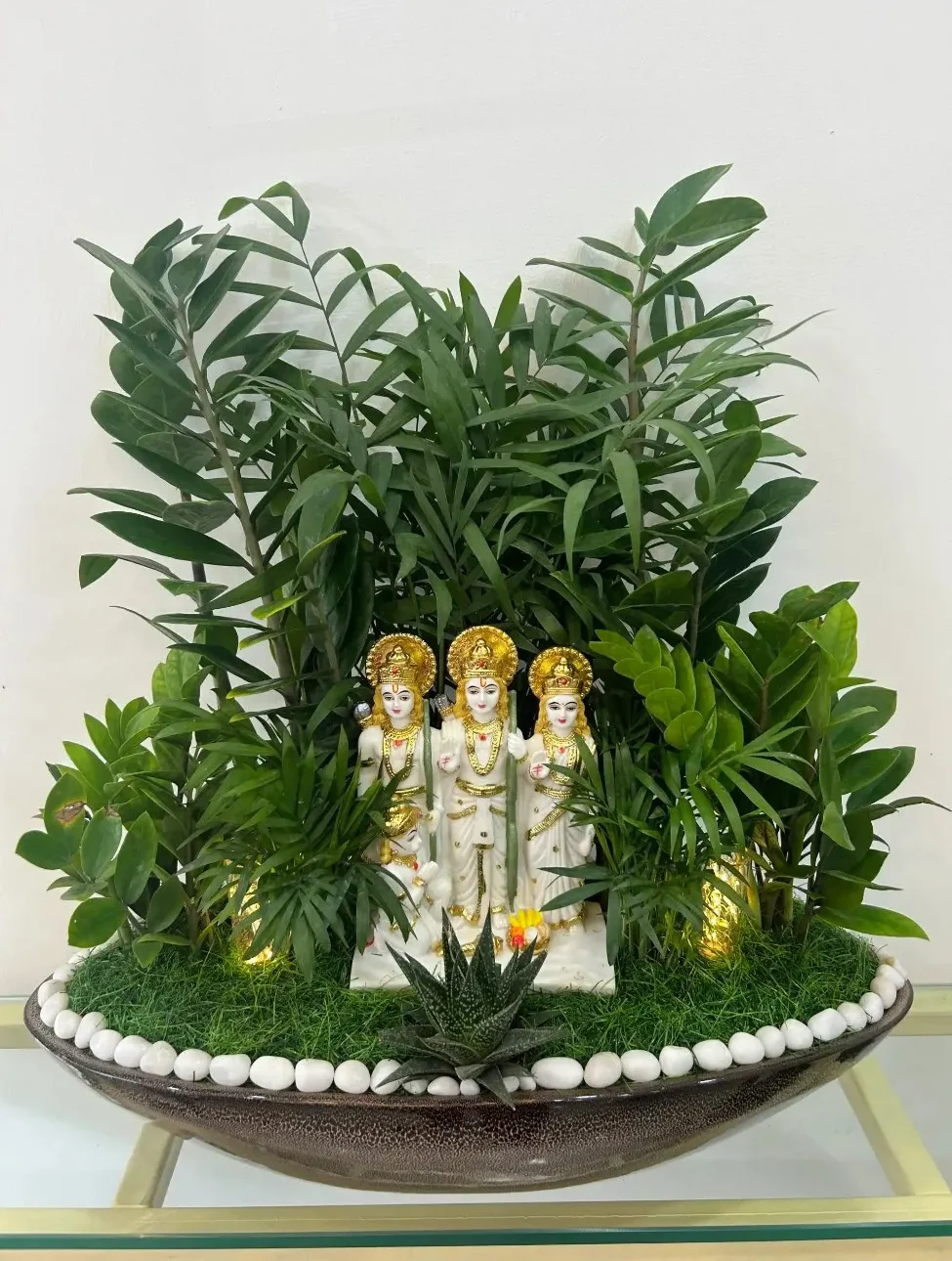 - Homes – Enhance your living room, puja room, or entrance with divine vibes and greenery.
