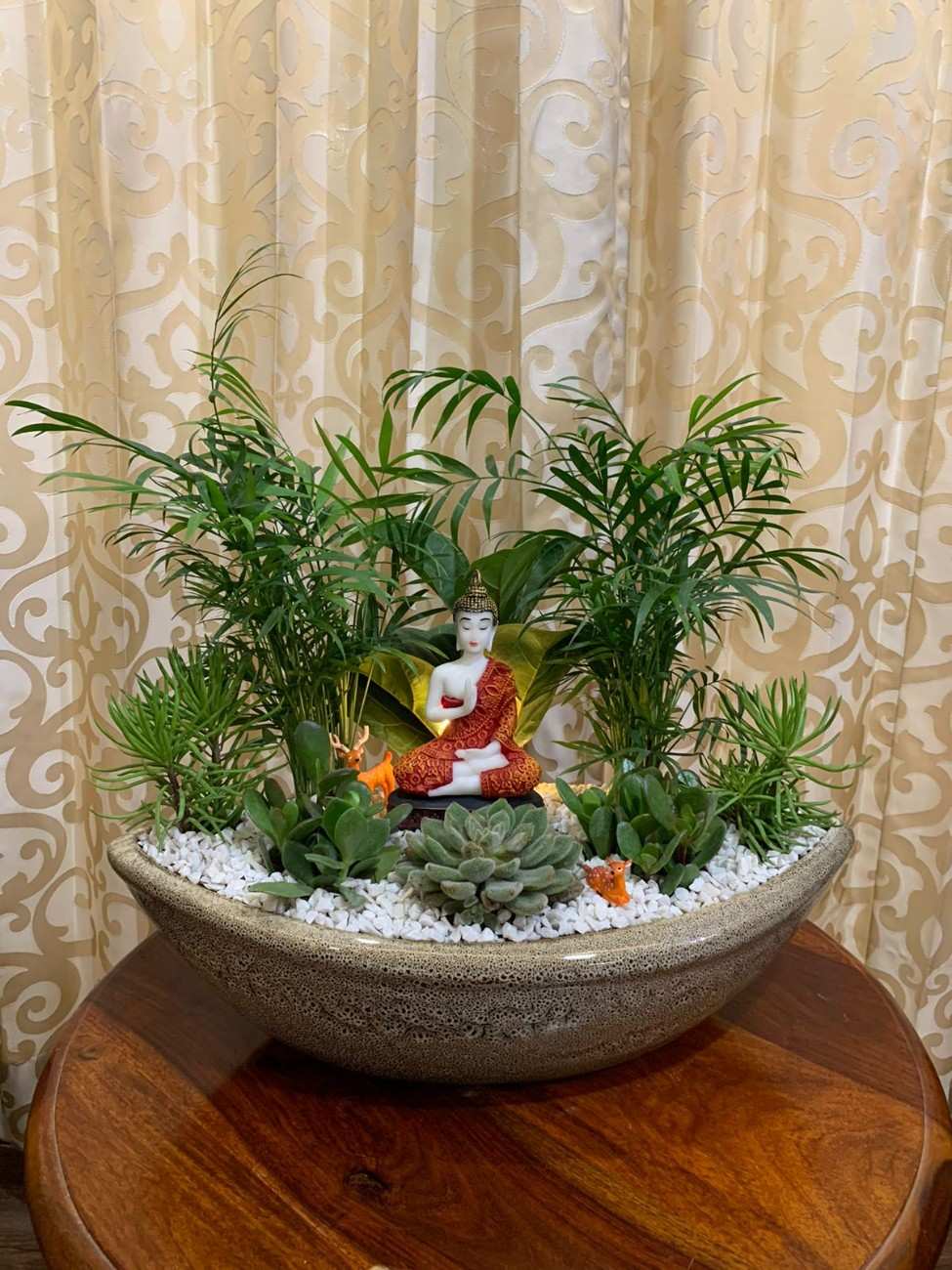 - Plants used: Fiddle Leaf Fig, Miniature Palm, Bush Senecio, Crasulla, Laxmi Kamal.
